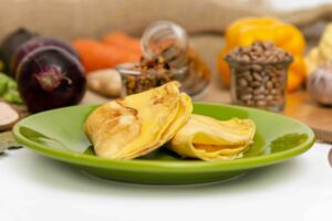 INGREDIENTES: Ovo, farinha de tapioca, queijo fresco sem lactose, peito de peru, molho de tomate natural , sal rosa.